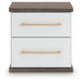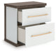 Looking to make a subtly striking statement in your bedroom? We've got you covered. This nightstand’s sophisticated two-tone treatment marries a warm brown finish over replicated walnut grain with a matte white finish. Rounded corners and a thick top radiate an air of modern panache, while sleek handles in a champagne finish add a sparkling touch to the spacious drawers. And built-in USB charging keeps your gadgets powered up. It’s a master class in contemporary yet comfortable character.