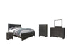 | Details | B249-46: Made with engineered wood (MDF/particleboard/plywood) and decorative laminate for the right balance of affordability and durability, Dark charcoal finish over replicated oak grain, Linear pulls with dark pewter-tone finish, 5 smooth-gliding drawers, Safety is a top priority, clothing storage units are designed to meet the most current standard for stability, ASTM F 2057 (ASTM International), Drawers extend out to accommodate maximum access to drawer interior while maintaining safety, Assembly required, B249-92: Made with engineered wood (MDF/particleboard/plywood) and decorative laminate for the right balance of affordability and durability, Dark charcoal finish over replicated oak grain, Linear pulls with dark pewter-tone finish, 2 smooth-gliding drawers, Assembly required, B249B1: Includes dresser and mirror, Made with engineered wood and decorative laminate, Dark charcoal finish over replicated oak grain, 7 smooth-gliding drawers; 3 drawer sizes, Linear pulls with dark pewter-tone finish, Mirror attaches to back of dresser, Safety is a top priority, clothing storage units are designed to meet the most current standard for stability, ASTM F 2057 (ASTM International), Drawers extend out to accommodate maximum access to drawer interior while maintaining safety , Assembly required, B249B4: Includes headboard, footboard and rails, Made with engineered wood (MDF/particleboard) and decorative laminate, Dark charcoal finish over replicated oak grain, Foundation/box spring required, sold separately, Mattress available, sold separately, Assembly required, Bed is compatible with an adjustable base, | |