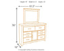 | Details | B251-58: Made with engineered wood (MDF/particleboard/plywood) and decorative laminate for the right balance of affordability and durability, Vintage aged brown rough sawn finish over replicated oak grain, ¼” bolts (not included) are needed to attach headboard to existing bed frame, Bolt (not included) length depends on the thickness of your bed frame, Assembly required, B251B1: Made of engineered wood (MDF/particleboard) and decorative laminate, Vintage aged brown rough sawn finish over replicated oak grain, Pewter-tone hardware, 6 drawers, 1 cabinet with 1 adjustable shelf, Mirror attaches to back of dresser, Safety is a top priority, clothing storage units are designed to meet the most current standard for stability, ASTM F 2057 (ASTM International), Drawers extend out to accommodate maximum access to drawer interior while maintaining safety, Assembly required, | |