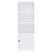 • Media towers feature three open shelves and a one-door cabinet with adjustable shelving