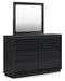 | Details | Includes dresser and mirror, Made with pine solids, veneers and engineered wood substrate, Textured black wood stain with waxy topcoat, Hardware-less design, 6 drawers with fully finished interiors, dovetail construction and ball-bearing side glides (top drawers felt lined), Mirror attaches to back of dresser | |