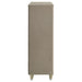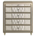 • Tempered glass top, crystal knobs, and quilted textures elevate the glam aesthetic