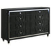 • Dresser features eight drawers, LED trim, and a clear tempered glass top surface