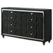 • Eight-drawer dresser fully upholstered in a black velvet for layered softness