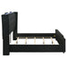 • Eastern king bed upholstered in a black velvet with tufted wingback silhouette