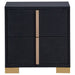 Gleaming gold accents create a sense of richness and elegance for a contemporary bedroom set. In a black finish that's crisp and timeless, the set offers a stylish, modern bed complete with a squared headboard and low footboard, offering an airy feel in your bedroom. The headboard is equipped with built-in LED lighting operated by touch switches on the left and right sides, within easy reach from either side of the bed. The mood lighting creates a lovely ambiance while accent pieces in the set offer plenty of storage. The dresser is topped with a framed mirror, great for opening your space and providing a great spot for choosing jewelry or a tie in the morning.