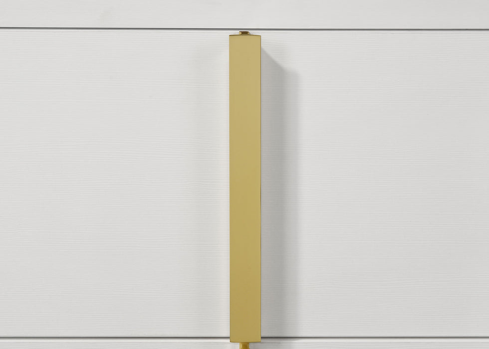 Cool white and warm gold create a compelling, modern ambiance for a stylish contemporary bedroom set. Centered on clean-lined silhouettes, the set features a modern bed complete with a squared headboard with built-in LED lighting that creates the right mood for relaxing evenings. The light is operated with a touch switch on each side of the headboard, assuring it's in easy reach. Storage pieces add roomy drawers with vertical gold pulls, and the dresser is topped in a framed mirror that adds to the airy feel of this set. Bracket feet complete the set, offering reliable stability and just the right hint of modern glam sophistication.
