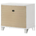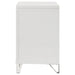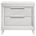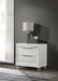 Complete your bedroom ensemble with this elegant 2-drawer nightstand, designed with a modern Italian aesthetic. The white finish, accented with mirror framing and polished chrome metal hardware, creates a striking look. Featuring picture framed recessed panels with an embossed herringbone graphic pattern, this nightstand offers both style and functionality. The top drawer includes cord management access, making it perfect for your rechargeable devices. Crafted from rubberwood, MDF, and mirror, this nightstand is a luxurious addition to any bedroom.