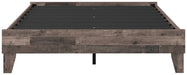 Details Queen platform bed (does not include headboard), Includes footboard, rails and platform, Made with engineered wood (MDF/particleboard/plywood) and decorative laminate for the right balance of affordability and durability, Rustic butcher block finish over replicated pine grain with authentic touch, Bed does not require additional foundation/box spring; accommodates most zero clearance adjustable bases, Mattress available, sold separately, Assembly required