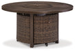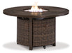 | Details | 48" round fire pit with CSA-approved 55,000 BTU stainless steel burner, glass beads, burner cover and protective all-weather cover, All-weather, handwoven resin wicker over rust-free aluminum frame, Aluminum wood-look top, Door conceals gas propane tank (not included), Convertible to natural gas, Battery-operated ignition system with adjustable flame control; battery included, Gas line or propane tank connector hose not provided, Assembly required | |