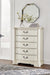 Details B980B2: Includes headboard, footboard and rails, Made with hardwood solids, spruce veneer, MDF substrates and cast resin components , Antiqued white painted finish, Polyester upholstery, Button tufting, Foundation/box spring required, sold separately, Mattress available, sold separately, Assembly required, B980B1: Includes dresser and mirror, Made with hardwood solids, spruce veneer, MDF substrates and cast resin components, Antiqued white painted finish, 9 drawers with fully finished interiors, French and English dovetail construction and ball-bearing side glides, Metal bar pulls with aged pewter-tone finish, Mirror attaches to back of dresser, B980-46: Made with hardwood solids, spruce veneer, MDF substrates and cast resin components, Antiqued white painted finish, 5 drawers with fully finished interiors, French and English dovetail construction and ball-bearing side glides, Metal bar pulls with aged pewter-tone finish, B980-93: Made with hardwood solids, spruce veneer, MDF substrates and cast resin components, Antiqued white painted finish, 3 drawers with fully finished interiors, French and English dovetail construction and ball-bearing side glides, Metal bar pulls with aged pewter-tone finish, 110V power supply with dual USB charging ports, Power cord included; UL Listed,