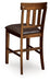 Sleek lines and comfortable cushioning combine to make this upholstered bar stool the favorite seat at the table. Its traditional shaker design is given a vintage treatment with a rustic burnished finish. Plus the faux leather upholstery easily wipes clean.