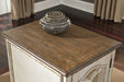 Elevating the art of traditional cottage styling, this chairside end table is sure to serve you beautifully for years to come. Antiqued two-tone aesthetic blends a chipped white with a distressed wood finished top for added charm. Cabinet door features inset mirror with filigree moulding for a fanciful twist.