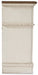 Elevating the art of traditional cottage styling, this dresser and mirror set is your dream bedroom retreat realized. This brilliantly crafted bedroom ensemble wows with dramatic scalloped details and an antiqued two-tone aesthetic, blending a chipped white with a distressed wood finished top for added charm. Framed drawer fronts and decorative corbels add refinement, while bail pulls in a dark bronze-tone finish lend a classic touch.