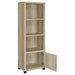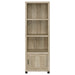 • Boxy silhouette with smooth surfaces and adjustable shelves for contemporary touch