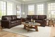 | Details | 5210738: Corner-blocked frame, Attached back and loose seat cushions, High-quality foam cushions wrapped in poly fiber, 100% top grain leather covers inside areas such as the back, seat and arm cushions; skillfully matched faux leather covers the remaining areas, Due to its natural origin, real leather can show individual characteristics such as healed scars, growth marks, grain variation and shade variation, Natural variations make each hide unique and do not detract from the wearing qualities of leather, Pigmented corrected grain leather with slight embossing and a light contrast spray effect to add more depth, Exposed feet with faux wood finish, Platform foundation system resists sagging 3x better than spring system after 20,000 testing cycles by providing more even support, Smooth platform foundation maintains tight, wrinkle-free look without dips or sags that can occur over time with sinuous spring foundations, 5210735: Corner-blocked frame, Attached back and loose seat cushions, High-quality foam cushions wrapped in poly fiber, 100% top grain leather covers inside areas such as the back, seat and arm cushions; skillfully matched faux leather covers the remaining areas, Due to its natural origin, real leather can show individual characteristics such as healed scars, growth marks, grain variation and shade variation, Natural variations make each hide unique and do not detract from the wearing qualities of leather, Pigmented corrected grain leather with slight embossing and a light contrast spray effect to add more depth, Exposed feet with faux wood finish, Platform foundation system resists sagging 3x better than spring system after 20,000 testing cycles by providing more even support, Smooth platform foundation maintains tight, wrinkle-free look without dips or sags that can occur over time with sinuous spring foundations, | |