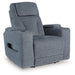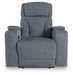 Details One-touch power control with adjustable positions, Easy View™ adjustable headrest and zero-draw USB port, Zero-draw technology only consumes power when the USB receptacle is in use, Extended ottoman for enhanced comfort, Corner-blocked frame with metal reinforced seat, Attached cushions, High-quality foam cushions wrapped in poly fiber, Next-Gen Nuvella is a performance fabric that is soft, easy to clean, stain-resistant and durable, Clean fabric with mild soap and water, let air dry; for stubborn stains, use a solution of 4 oz. bleach to 28 oz. water, Storage armrests with 2 cup holders, Ambient blue LED lighting on base and storage cutouts for a theater-style experience, Power cord included; UL Listed
