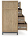 | Details | Made with hardwood solids, mango wood veneer, MDF substrates and metal, Light brown wood-tone finish, Gunmetal gray finish on metal legs, Metal bar pulls, 8 drawers with fully finished interior, dovetail construction and heavy duty ball-bearing side glides (top drawers felt lined) | |