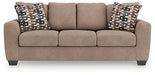 Details Corner-blocked frame, Attached back and loose seat cushions, High-quality foam cushions wrapped in poly fiber, Accent pillows included, Pillows with soft polyfill, Polyester upholstery, Exposed feet with faux wood finish, Included bi-fold queen memory foam mattress sits atop a supportive steel frame, Memory foam provides better airflow for a cooler night’s sleep, Memory foam encased in damask ticking