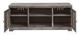 This entertainment center with fireplace insert is sure to win your heart with its daring designer take on modern rustic. Its crisp, clean and minimalist-chic profile is enriched with a striking replicated oak grain with thick plank styling and a weathered gray finish for that much more authentic character. Crossbuck detailing adds a brilliant barn door inspired touch. Adding that much more show-stopping style, the electric fireplace insert operates with or without heat and includes a six-level temperature setting, a remote control and an overheating control for added safety. It comes with faux glass crystals and natural stones, so you can customize the look of the flame bed.