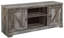 This TV stand with fireplace option is sure to win your heart with its daring designer take on modern rustic. The stand’s crisp, clean and minimalist-chic profile is enriched with a striking replicated oak grain with thick plank styling and a weathered gray finish for that much more authentic character. Crossbuck detailing adds a brilliant barn door inspired touch. Compatible with W100-101 and W100-02 electric fireplace inserts, sold separately.